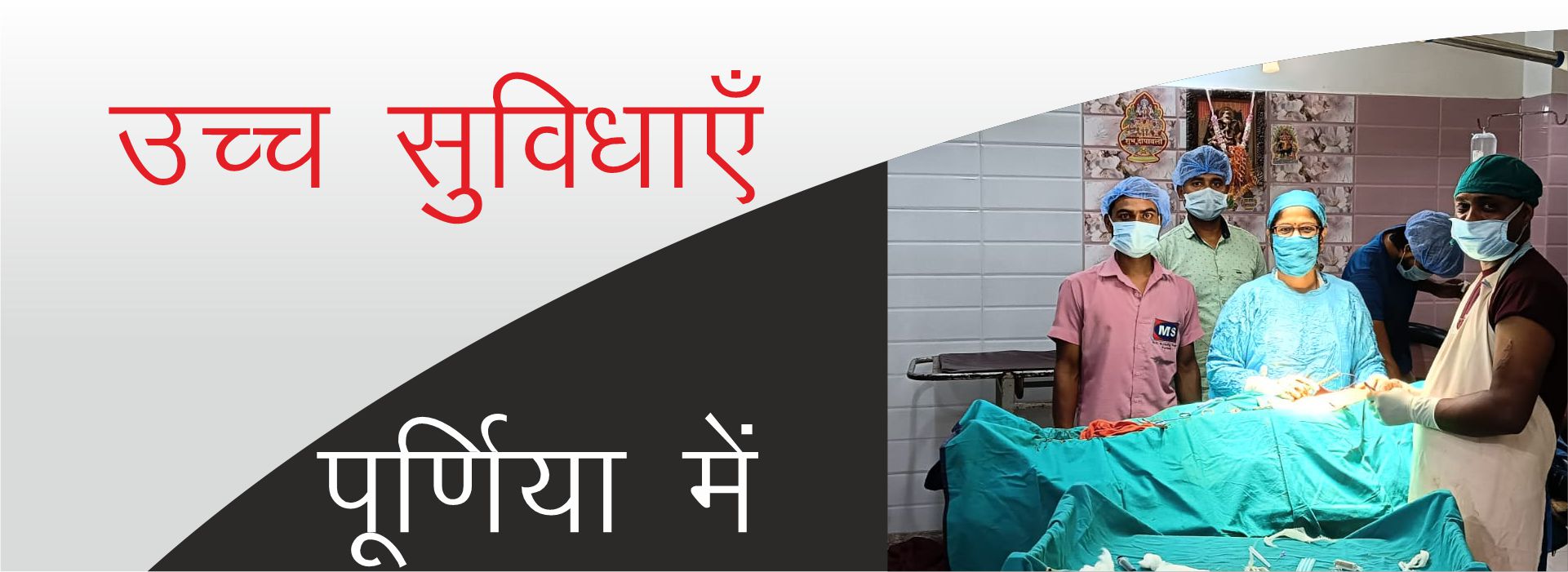 MS Nursing Home has deployed the latest cutting edge medical technology in the fields of Diagnostics, Surgery, Maternal and Child Care. The hospital has a fully equipped operation theatre to carry out the most complex surgeries under highly sterile environment. The Operation Theatre is equipped with the Latest Laparoscope to carry out Minimally Invasive General and Gynecological Surgeries. We also have advanced Pathology Lab which is run by Seemanchal region's First NABL Accreditated Maurya Labs.